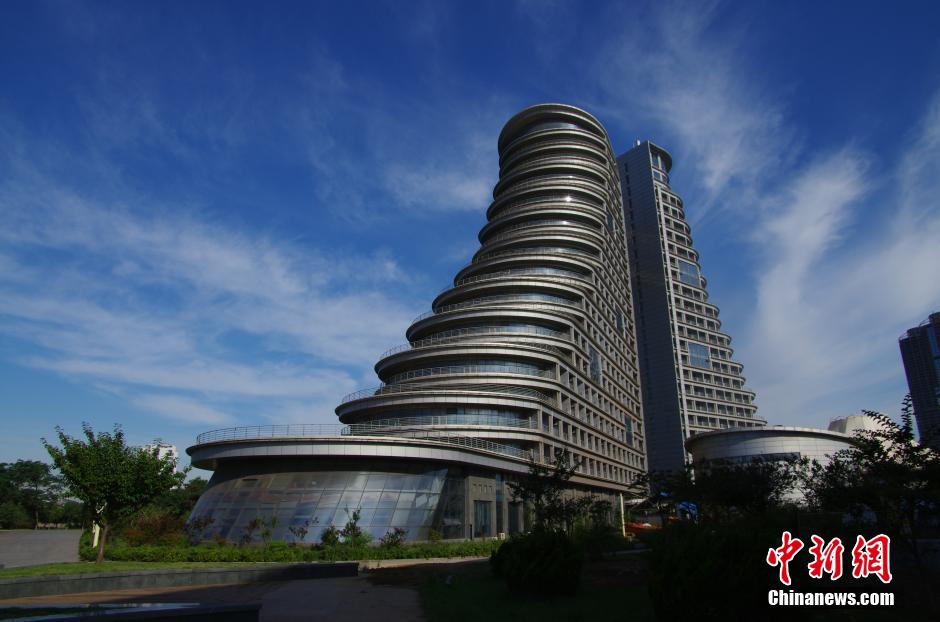 Photo taken on June 28, 2014 shows a hotel shaped like a pair of huge boots in Rizhao city in east China's Shandong province. The local people call it "boot buildings". (Photo/CNS)