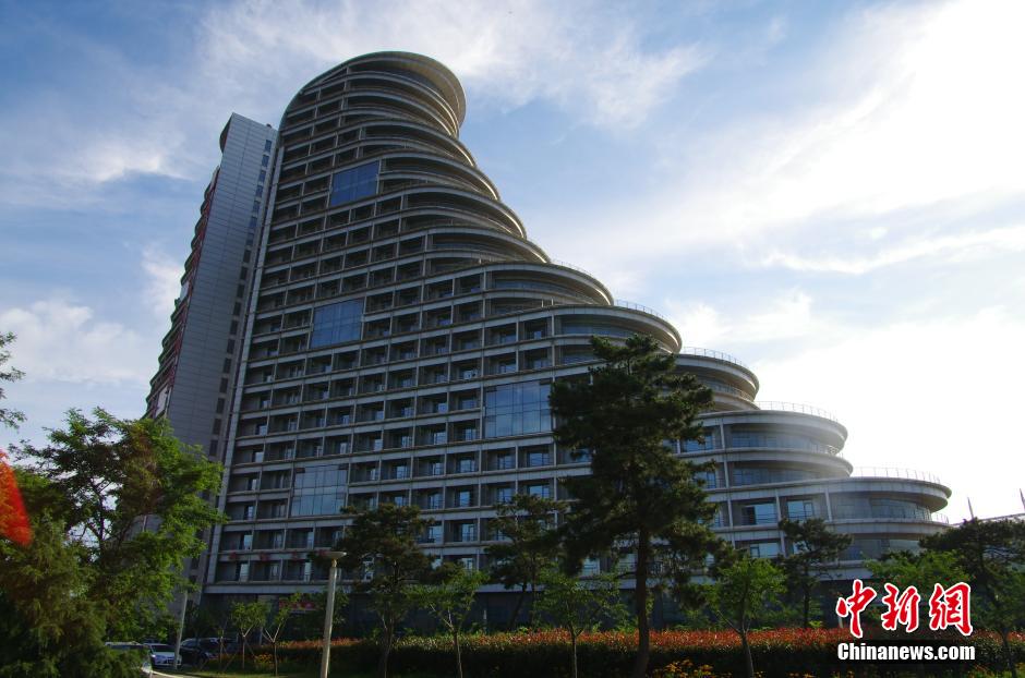 Photo taken on June 28, 2014 shows a hotel shaped like a pair of huge boots in Rizhao city in east China's Shandong province. The local people call it "boot buildings". (Photo/CNS)