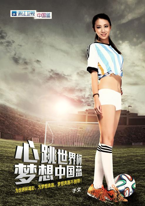The female reporters from Zhejiang TV dress up in soccer uniforms of the national teams participating in the Brazil FIFA World Cup and pose for photos to celebrate the global soccer tournament. (Photo/CNS)