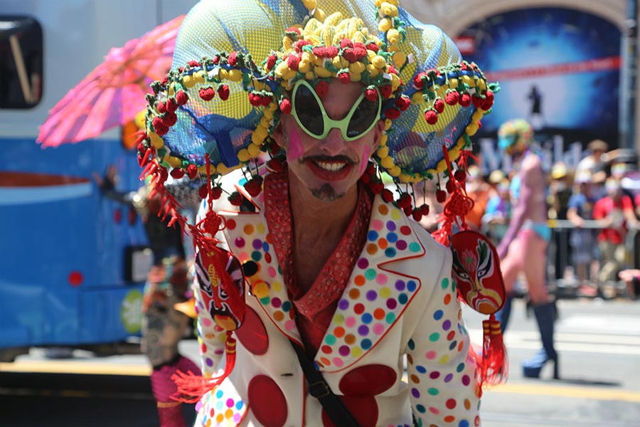 An estimate of 100,000 spectators and visitors flock to San Francisco on Sunday for the 44th annual Gay Pride Parade. Thousands of people from different groups participated in the parade with signs, banners or rode on floats. (People’s Daily Online/Han Shasha)