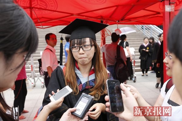 | Xue Yifan receives interview after the graduation ceremony of bachelor degree at Peking University on July 1, 2014. (Beijing News/Zhou Gangfeng) |