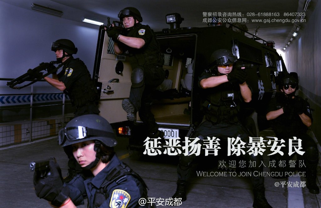 Recruitment promotion pictures posted by Chengdu Public Security Bureau on Sina Weibo, the Chinese equivalent of Twitter. (Photo/Weibo)