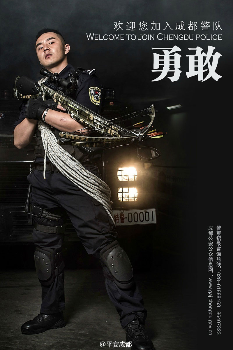Recruitment promotion pictures posted by Chengdu Public Security Bureau on Sina Weibo, the Chinese equivalent of Twitter. (Photo/Weibo)