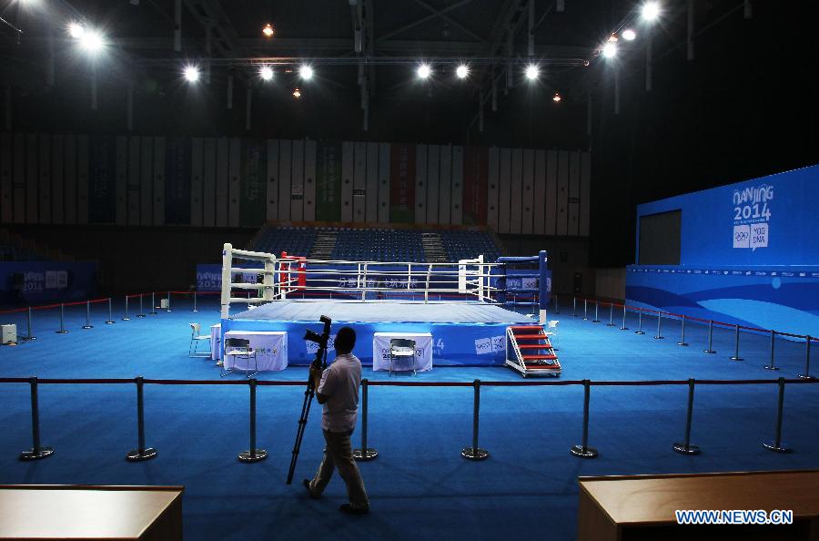 Picture taken on July 4, 2014 shows the interior of the boxing venue for the Nanjing 2014 Youth Olympic games in Nanjing, capital of east China's Jiangsu Province. The Nanjing 2014 Youth Olympic games will be held from August 16 to 28, attracting 3808 youth athletes from 204 countries and regions. (Xinhua/Gao Jing)