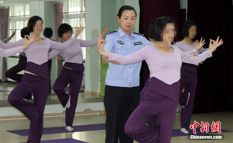 Tang guides the recovering addicts to practice yoga at 4:10 p.m. in the female compulsory rehabilitation center in east China's Jiangsu province. (Chinanews.com/Su Shifa)