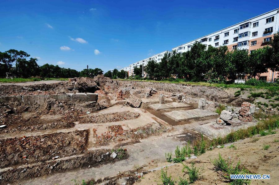 | Photo taken on July 7, 2014 shows the core area of the site of the Japanese Unit 731 troop, which is under a clearing process, in Harbin, capital of northeast China's Heilongjiang Province. Unit 731 was a biological and chemical warfare troop set up in China by the Japanese invaders during World War II. The clearing process in the Unit 731 site's core area, which consists of a bacteria lab and a prison used to keep people for biological experiments, will be finished by October 2014 and open to the public around the 70th anniversary of China's victory in World War II and the Chinese People's War of Resistance Against Japanese Aggressions in 2015. (Xinhua/Wang Jianwei) |