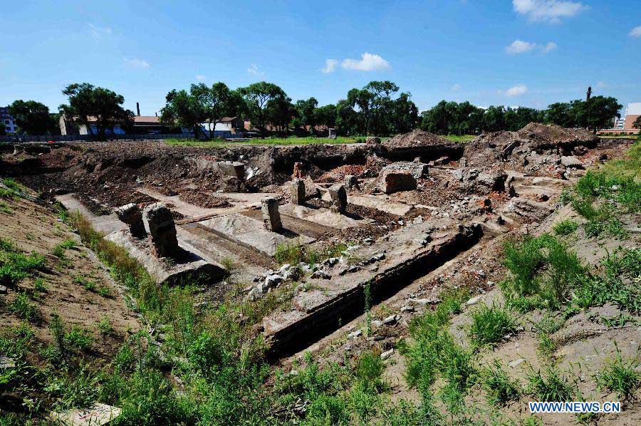 Photo taken on July 7, 2014 shows the core area of the site of the Japanese Unit 731 troop, which is under a clearing process, in Harbin, capital of northeast China's Heilongjiang Province. Unit 731 was a biological and chemical warfare troop set up in China by the Japanese invaders during World War II. The clearing process in the Unit 731 site's core area, which consists of a bacteria lab and a prison used to keep people for biological experiments, will be finished by October 2014 and open to the public around the 70th anniversary of China's victory in World War II and the Chinese People's War of Resistance Against Japanese Aggressions in 2015. (Xinhua/Wang Jianwei)