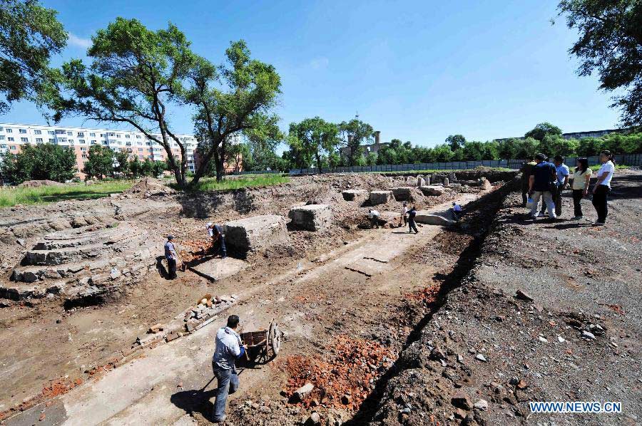 Workers conduct clearing work in the core area of the site of the Japanese Unit 731 troop in Harbin, capital of northeast China's Heilongjiang Province, July 7, 2014. Unit 731 was a biological and chemical warfare troop set up in China by the Japanese invaders during World War II. The clearing process in the Unit 731 site's core area, which consists of a bacteria lab and a prison used to keep people for biological experiments, will be finished by October 2014 and open to the public around the 70th anniversary of China's victory in World War II and the Chinese People's War of Resistance Against Japanese Aggressions in 2015. (Xinhua/Wang Jianwei)