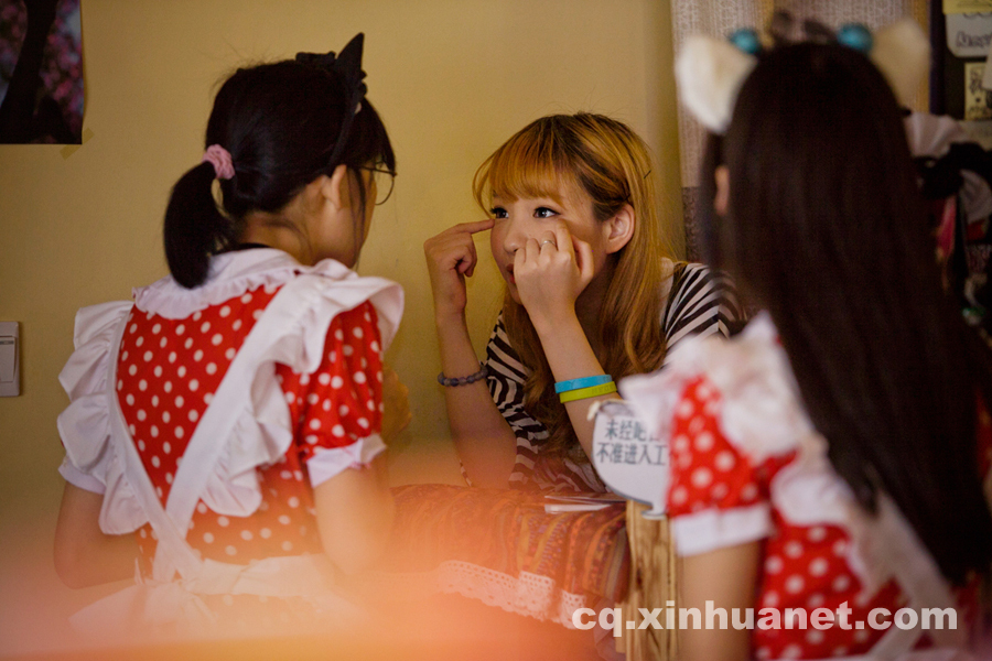 Photo taken in June 2014 shows a maid-themed cafe in Shapingba District, southwest China's Chongqing. (Photo/Xinhua)