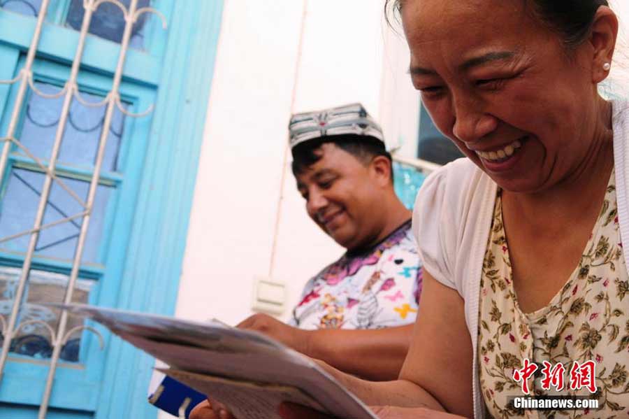Zhou Lina, of Han nationality, married with her Uyghur husband in 1997. They returned to Xinjiang in 2006. They’ve been living happily together. (China News Service/Ma Xinlong)