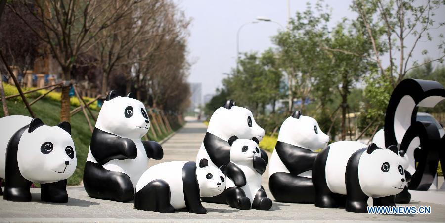 Panda figures are displayed during the open-air show "1st Panda" in Shenyang, capital of northeast China's Liaoning Province, July 7, 2014. A hundred panda figures made from bamboo scraps are shown during the event, which aims at promoting environmental awareness. (Xinhua/Yao Jianfeng)