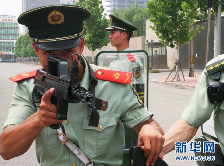 | Recently, Beijing Armed Police have deployed armed patrols to maintain stability in the capital. Carrying guns with live ammunition and wearing bulletproof helmets and bulletproof vests, soldiers of the armed police force patrol important places including the Silk Alley, Taikoo Li Sanlitun, Liangmaqiao Road. (Xinhua News Agency/Zheng Guangao) |