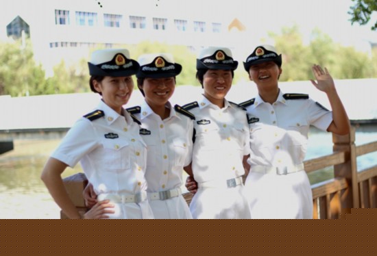 The first three female Uyghur students from Xinjiang Uyghur Autonomous Region have been studying at PLA Dalian Naval Academy for a year until this July. (Photo/Chinamil.com.cn)