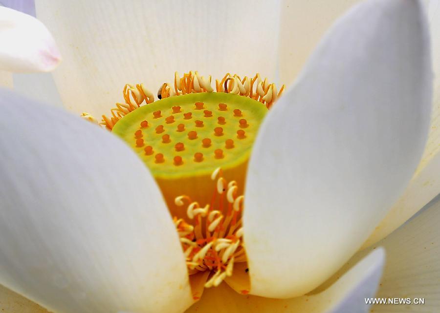 Photo taken on July 12, 2014 shows a lotus nut at the Lotus Park in Luoyang, central China's Henan Province. (Xinhua/Wang Song)