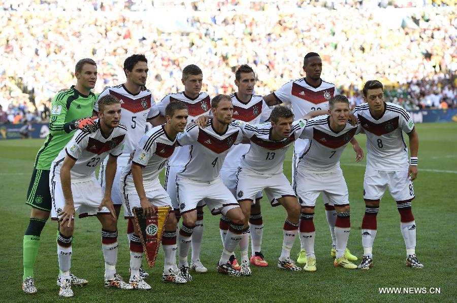 Germany's players pose for a team photo before the final match between Germany and Argentina of 2014 FIFA World Cup at the Estadio do Maracana Stadium in Rio de Janeiro, Brazil, on July 13, 2014. (Xinhua/Qi Heng)