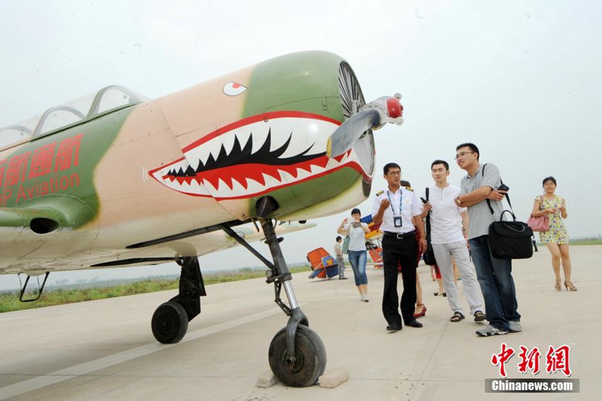 Visitors look at a plane at Tianjin's first private flying club. (CNS/ Tong Yu)