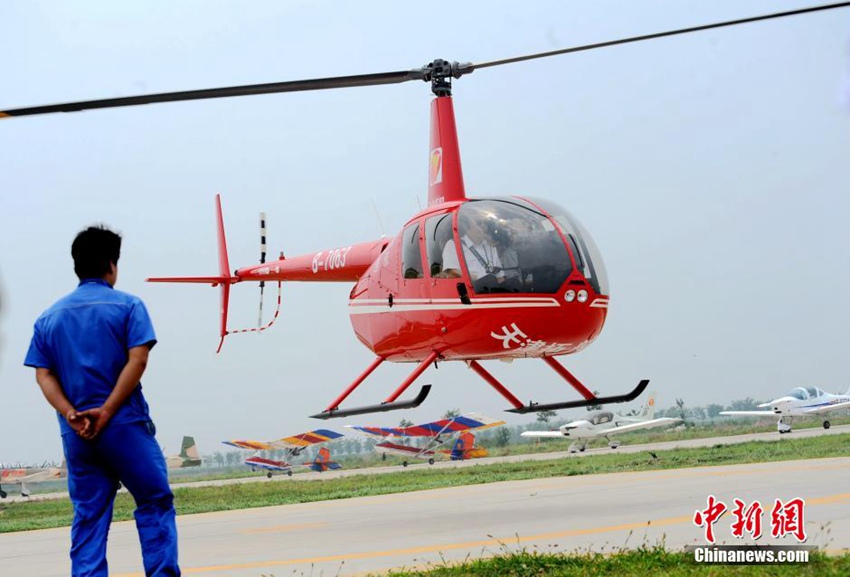 A helicopter takes off at Tianjin's first private flying club. (CNS/ Tong Yu)