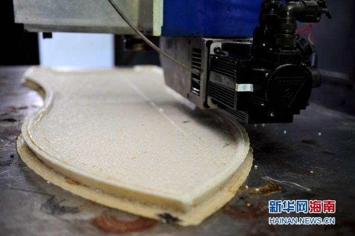 A 2-meter-long boat made of nylon resin material is printed. (Xinhua/Guo Cheng)