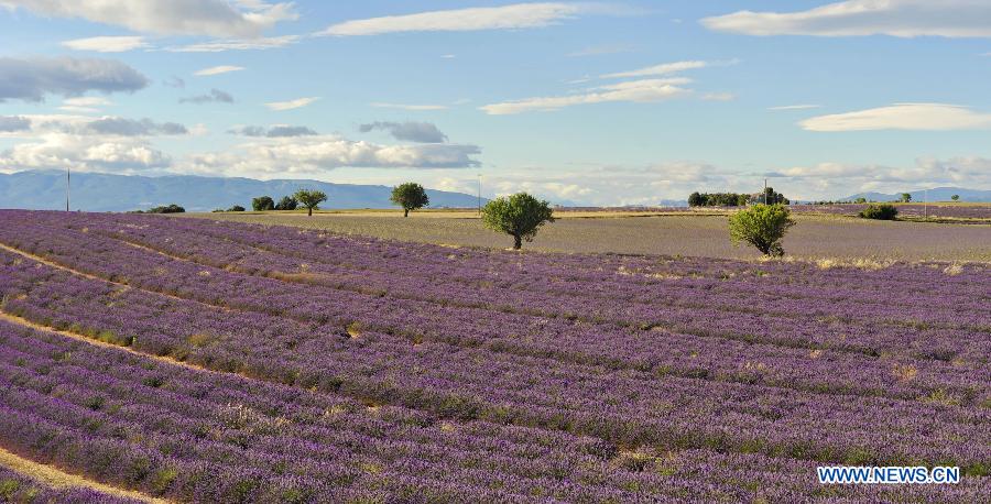 Photo taken on July 10, 2014 shows lavender field at Valensole of Provence, south of France. (Xinhua/Ye Pingfan)