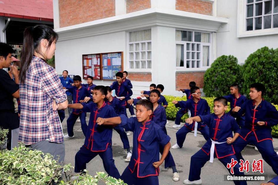 Photo taken on July 15, 2014 shows Chinese teacher Zhang Kaili teaching martial arts in Kathmandu, Nepal. (Photo/Chinanews.com)