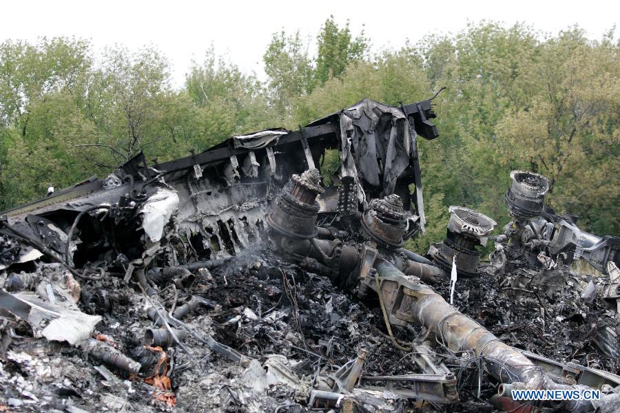 Photo taken on July 18, 2014 shows the debris at the crash site of MH17 of Malaysian Airlines near the city of Shakhtarsk in Ukraine's Donetsk region. Malaysian Transport Minister Liow Tiong Lai said Friday that according to the International Civil Aviation Organization's Annex 13, the Ukrainian government should institute an investigation into the circumstances of the deadly MH17 incident, and be responsible for the conduct of the investigation. (Xinhua/Alexander Ermochenko)