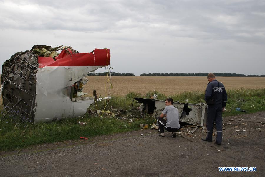 Rescuers work at the crash site of MH17 of Malaysian Airlines near the city of Shakhtarsk in Ukraine's Donetsk region, July 18, 2014. Malaysian Transport Minister Liow Tiong Lai said Friday that according to the International Civil Aviation Organization's Annex 13, the Ukrainian government should institute an investigation into the circumstances of the deadly MH17 incident, and be responsible for the conduct of the investigation. (Xinhua/Alexander Ermochenko)