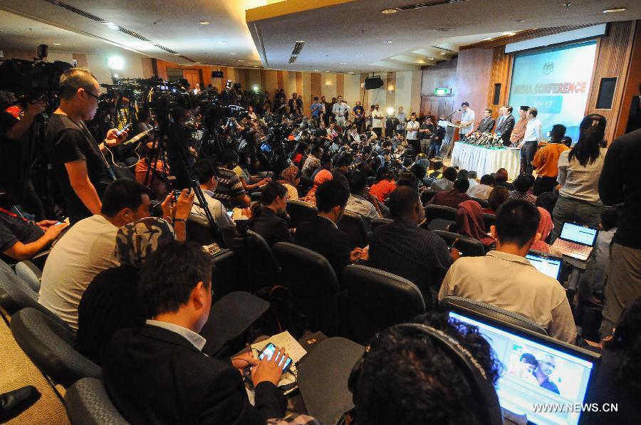 | A press conference is held by Malaysian Transport Minister Liow Tiong Lai in Kuala Lumpur, Malaysia, July 18, 2014. Malaysian Transport Minister Liow Tiong Lai said here Friday in a press conference that according to the International Civil Aviation Organization's Annex 13, the Ukrainian government should institute an investigation into the circumstances of the deadly MH17 incident, and be responsible for the conduct of the investigation. (Xinhua/Chong Voon Chung) |