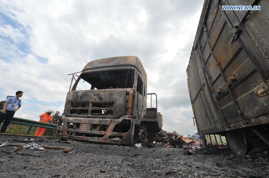 CHANGSHA, July 19 -- At least 38 people are confirmed dead and another five injured after a vehicle crash triggered fire and explosion on a central China highway early Saturday morning, police said.
