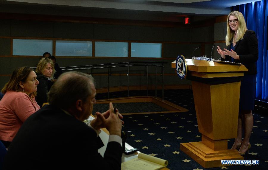 | U.S. State Department spokeswoman Marie Harf speaks during daily press briefing in Washington D.C., capital of the United States, July 21, 2014. U.S. President Barack Obama on Monday called for a full, unimpeded and transparent investigation into the crash of Malaysian airliner MH17 in Ukraine. (Xinhua/Bao Dandan) |