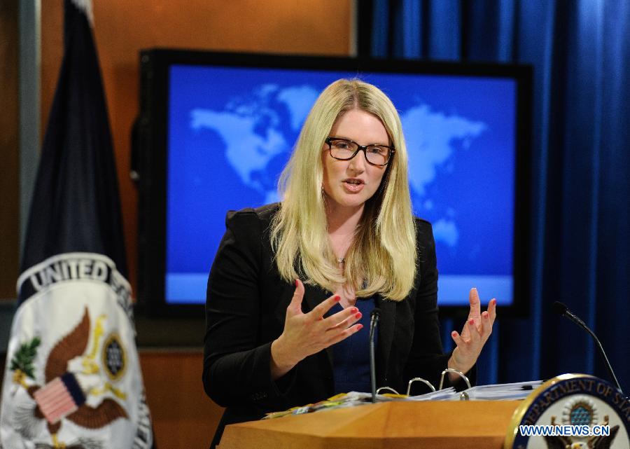 U.S. State Department spokeswoman Marie Harf speaks during daily press briefing in Washington D.C., capital of the United States, July 21, 2014. U.S. President Barack Obama on Monday called for a full, unimpeded and transparent investigation into the crash of Malaysian airliner MH17 in Ukraine. (Xinhua/Bao Dandan)