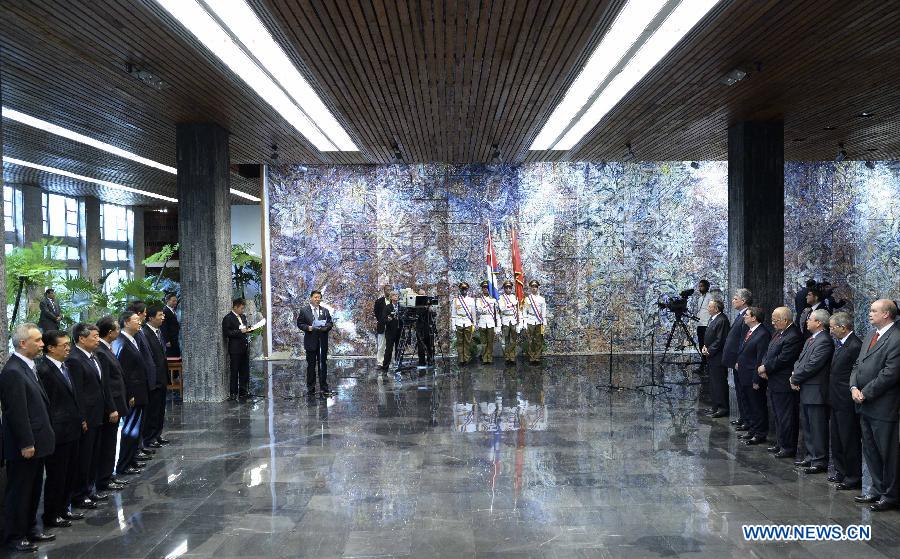 Chinese President Xi Jinping is awarded Cuba's Jose Marti Medal by the Cuban government in Havana, capital of Cuba, July 22, 2014. Cuban President Raul Castro conferred the medal to Xi. (Xinhua/Ma Zhancheng)