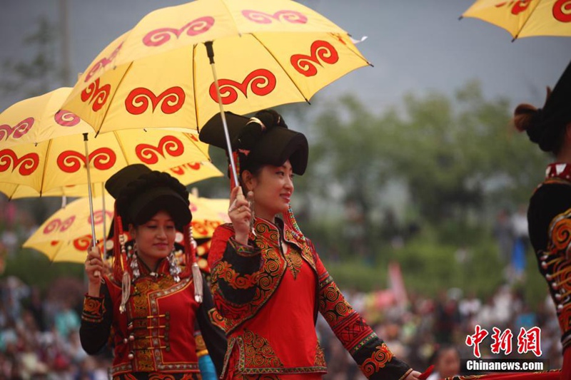 People celebrate Torch Festival on July 20, 2014. Torch Festival, a traditional carnival for the Yi ethnic group, is held annually on June 24 or 25 of the lunar calendar. (CNS Photo)