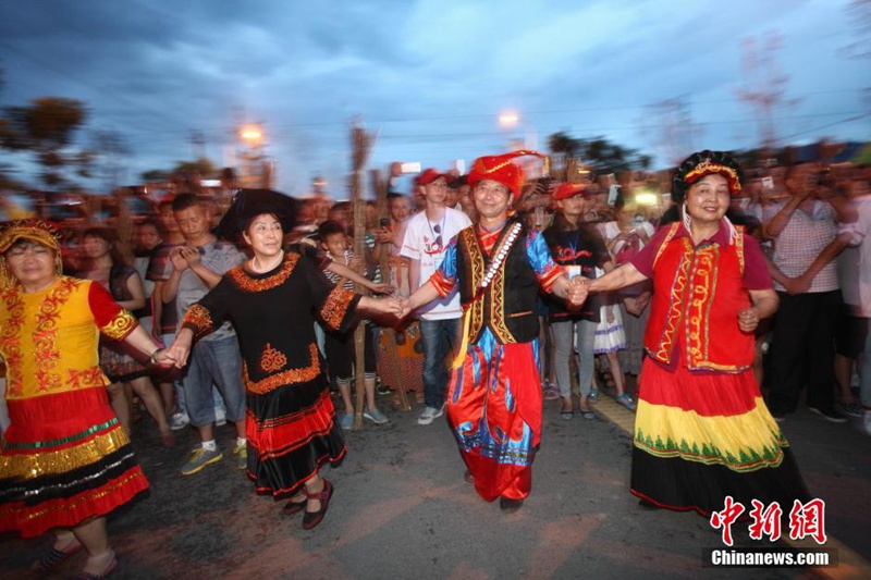 People celebrate Torch Festival on July 20, 2014. Torch Festival, a traditional carnival for the Yi ethnic group, is held annually on June 24 or 25 of the lunar calendar. (CNS Photo)