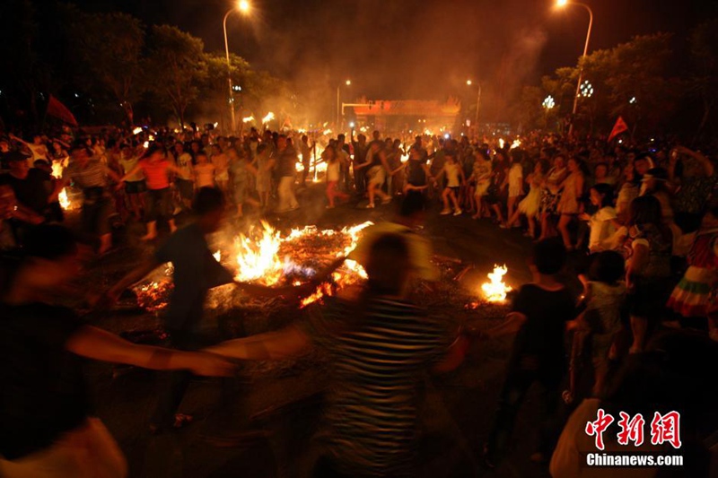 People celebrate Torch Festival on July 20, 2014. Torch Festival, a traditional carnival for the Yi ethnic group, is held annually on June 24 or 25 of the lunar calendar. (CNS Photo)