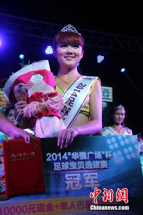 Passionate football babies attending a contest are seen at Huaqiang Square in Wuhu city, east China's Anhui province on July 20, 2014. Tan Jing won the championship. (CNS/Li Qingsong)