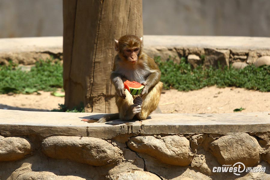 Heat waves have hit Xi'an recently. Breeders in a zoo provide green bean soup, ice cream and watermelon to animals. They've also offered air conditioners, swimming pools and cool showers to help animals remain cool in hot summer. (Photo: cnwest.com)