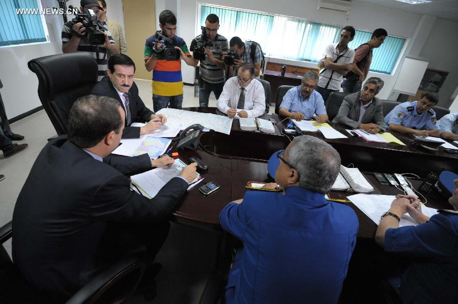 An Algerian crisis unit, chaired by Minister of Transport Amar Ghoul (L), meets at the Houari-Boumediene International Airport in Algiers on July 24, 2014, following the disappearance of an Air Algerie plane over Mali. (Xinhua)