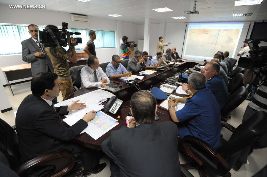 An Algerian crisis unit, chaired by Minister of Transport Amar Ghoul (L), meets at the Houari-Boumediene International Airport in Algiers on July 24, 2014, following the disappearance of an Air Algerie plane over Mali. (Xinhua)