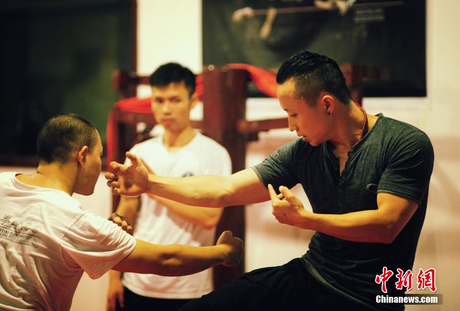 Wing Chun master Tu Tengyao teaches students in southwest China's Chongqing. He has more than 80 students from all walks of life, with the age varied from 8 to 50. (Photo/CNS)