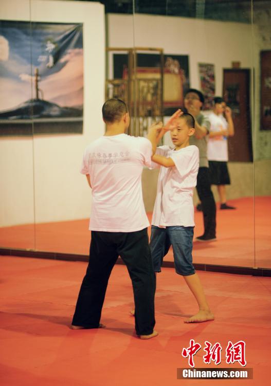 Wing Chun master Tu Tengyao teaches students in southwest China's Chongqing. He has more than 80 students from all walks of life, with the age varied from 8 to 50. (Photo/CNS)