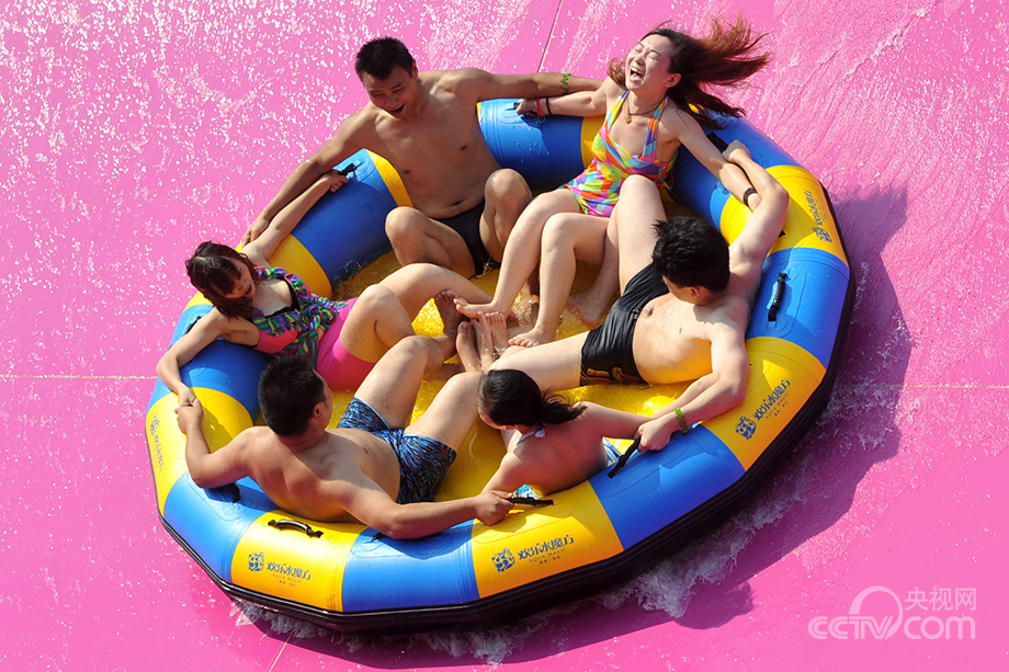 People play in the water park in Nanjing on July 20, 2014. (Photo/CNTV)