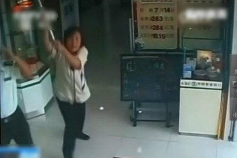 On July 14, a man with a knife burst into a bank in Shanghai yelling: "You have fifteen seconds to give me the money!" At the critical moment, a dama who was a cleaner in the bank attacked the mad criminal with a metal mop. He was finally pacified by the dama and the bank's security guards.