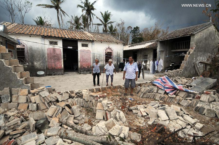 Zhang Yeping, a villager, stands in front of the ruins of his home, brought down by Typhoon Rammasun, in Shenlang Village under Wengtian Town of Wenchang, south China's Hainan Province, July 27, 2014. Typhoon Rammasun, which made its landfall in Wenchang on July 18, was the strongest typhoon that hit south China in four decades. According to China's Ministry of Civil Affairs, the super typhoon has killed 62 people as of Friday, with another 21 still missing. (Xinhua/Wei Hua)