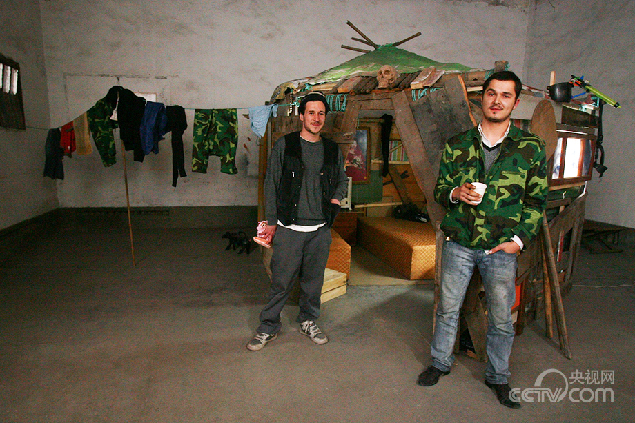 French student Damian Levy and Germany student Moritz Gramming from Sculpture Department of Chongqing Academy turn the 5-meter-high warehouse into an exhibition hall with waste materials. (Photo/CNTV)