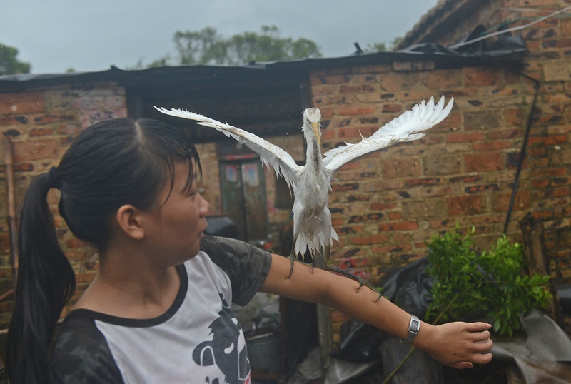 After Fu Feiwu lights up firewood, some herons rush to it for warmth. An hour later, more herons could stand up. (Photo/ Deng Bo)
