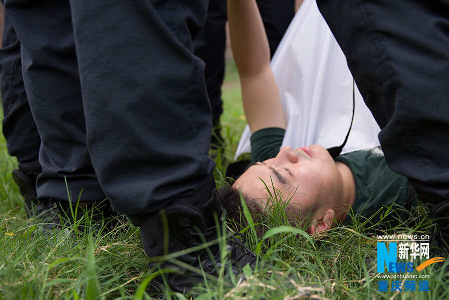 A member of the Chongqing Armed Police Corpssnapped some rather incredible wedding photos with his bride-to-be at a SWAT training center. (Photo/Xinhua News Agency)