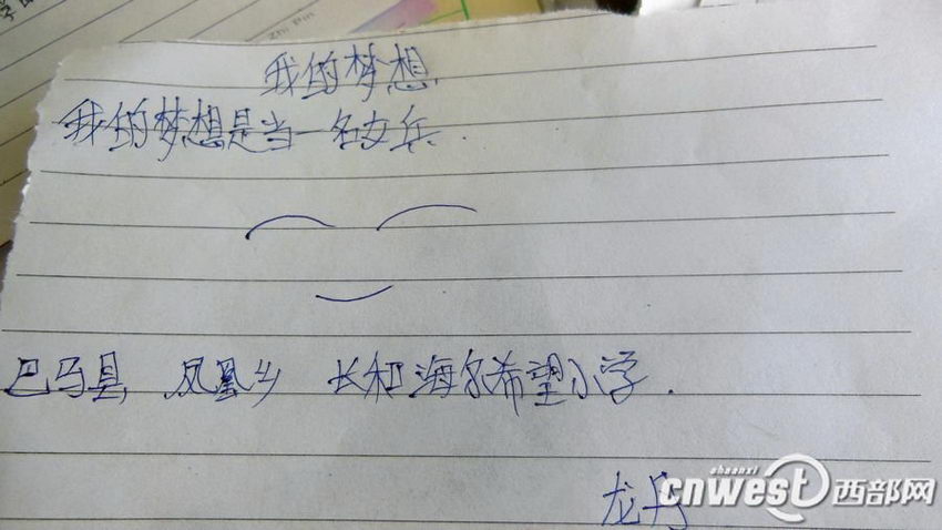 A primary school student leaves a note for Chen saying she dreams of becoming a soldier. (Photo/Cnwest)
