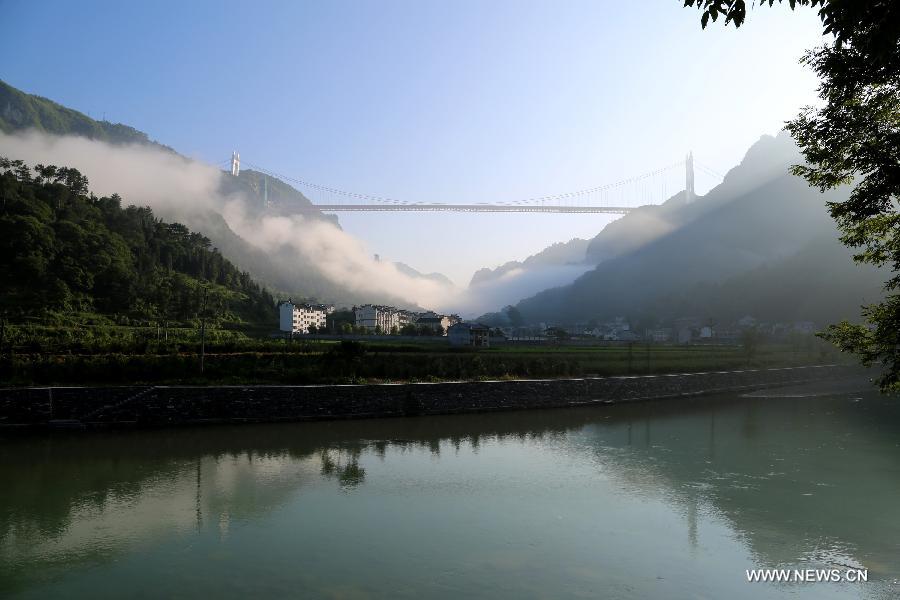 | Photo taken on July 29, 2014 shows the scenery of Aizhai grand canyon in Jishou, central China's Hunan Province, July 29, 2014. (Xinhua/Peng Biao) |