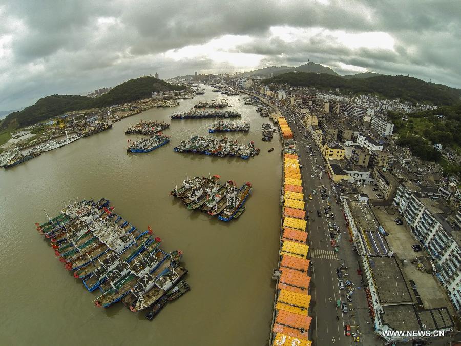 Fishing boats are berthed in a harbor in Zhoushan, east China's Zhejiang Province, July 31, 2014. Typhoon Nakri is moving from waters southwest of Taiwan Island into the East China Sea at a speed of 20 to 25 kilometers per hour (kph), said China's National Marine Environmental Forecasting Center on Thursday. Emergency response programs have been launched by local governmental department in Zhejiang. (Xinhua/Xu Yu)
