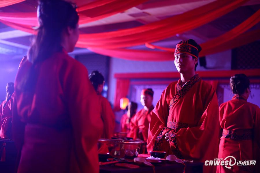 A total of 18 newlyweds attend a group wedding ceremony in Xi'an, capital of northwest China's Shaanxi province on Friday, as the "Qixi" festival approaches. They got married during the wedding wearing Han Chinese clothing, the costume of Han People in China, for the traditional service. "Qixi", marked on the seventh day of the seventh lunar month,is a traditional festival regarded as the Chinese Valentine's Day. (Cnwest Photo)
